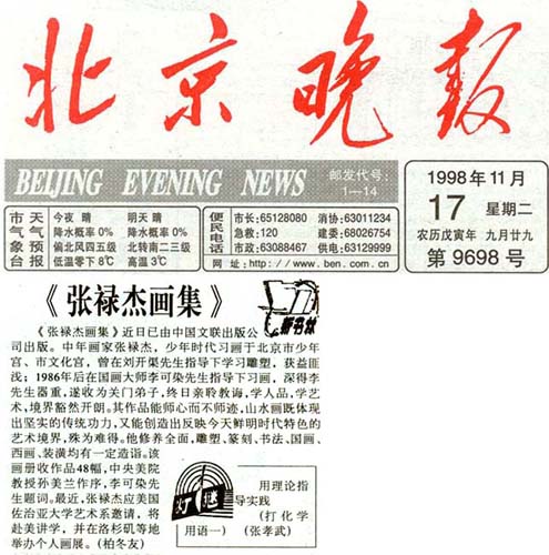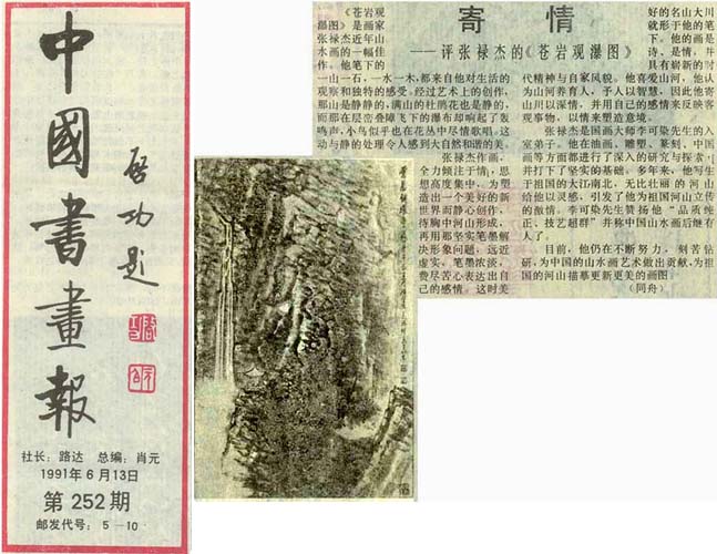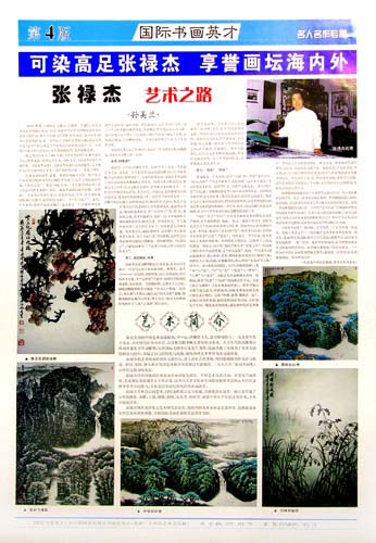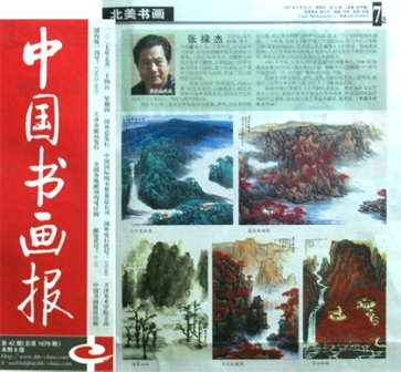 《中国书画报》,“海外专刊北美书画”专版上,特刊登介绍张禄杰先生的文章,并选登五幅山水画作品。