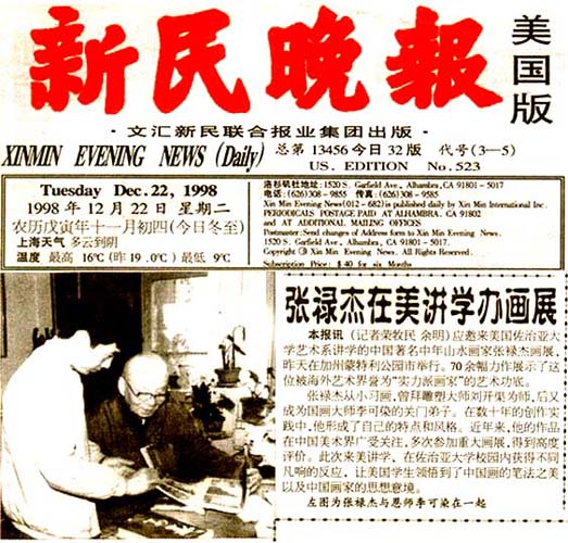 《新民晚报》刊登 张禄杰在美讲学办画展