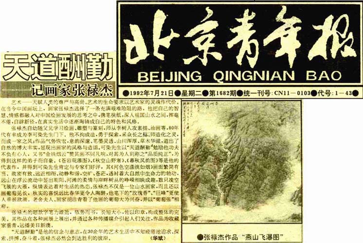 《北京青年报》刊登 “天道酬勤”——记画家张禄杰
