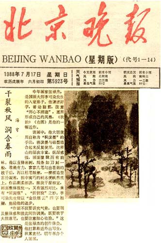 《北京晚报》刊登 “干裂秋风 润含春雨”