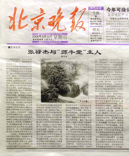《北京晚报》发表文章 “张禄杰与‘师牛堂’”